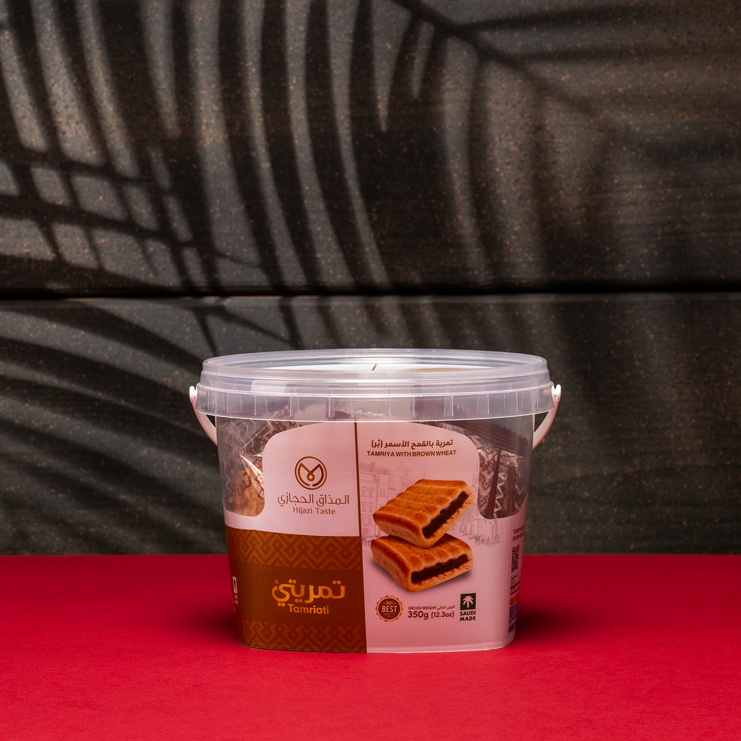 - بدقيق القمح الاسمر الفاخر محشو بالتمر السعودي. مقدم لكم بتغليف عصري و مناسب ، تمريتي من المذاق الحجازي لأهل المذاق.