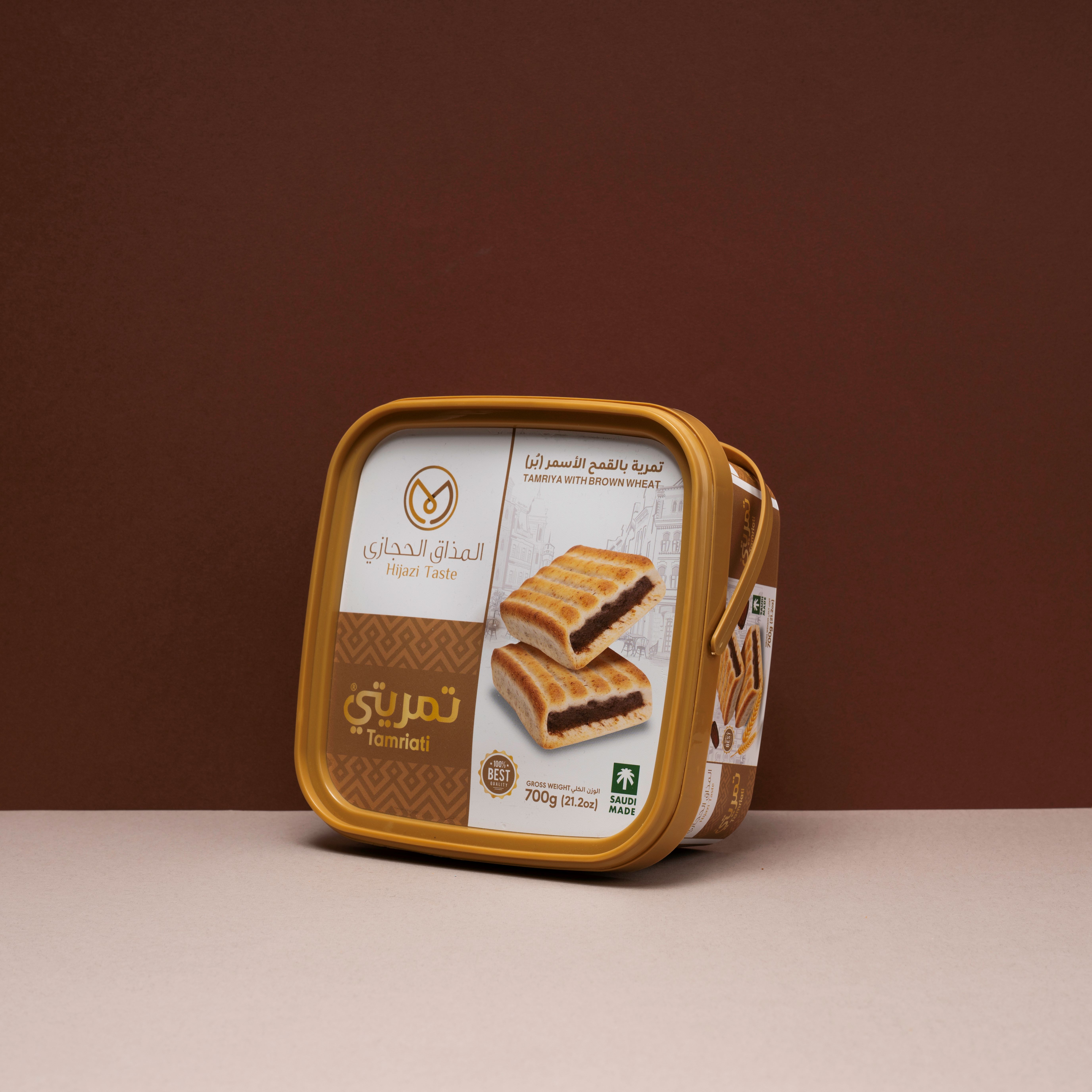 - بدقيق القمح الاسمر الفاخر محشو بالتمر السعودي. مقدم لكم بتغليف عصري و مناسب ، تمريتي من المذاق الحجازي لأهل المذاق.